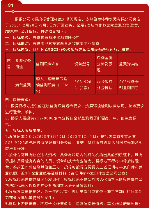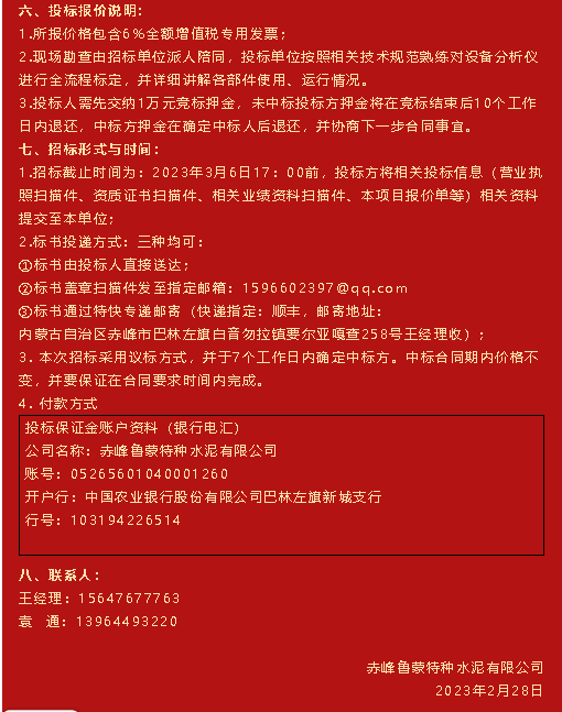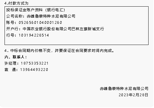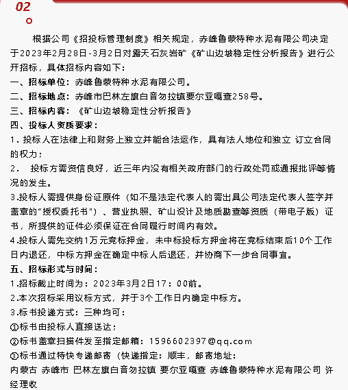 【招標公告】魯蒙水泥