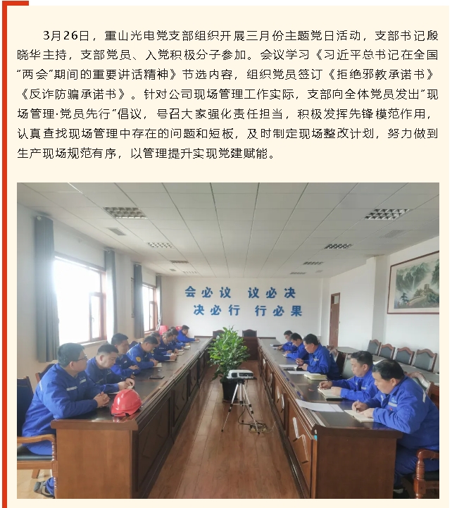 【黨建】重山光電黨支部開展三月份主題黨日活動