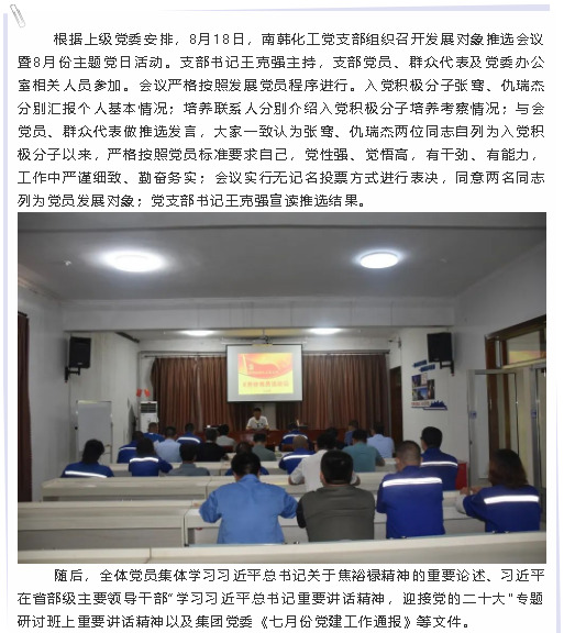 【黨建】南韓化工黨支部召開(kāi)發(fā)展黨員推選會(huì)議