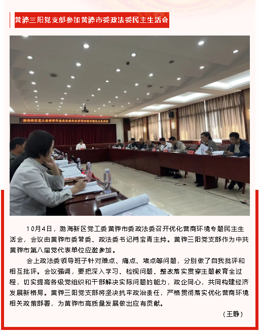 【黨建】集團黨委開展9月份黨建工作督查、黃驊三陽黨支部參加黃驊市委政法委民主生活會