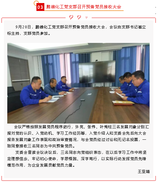 【黨建】淄川區(qū)審計(jì)局、巴林左旗委組織部分別到重山集團(tuán)和鵬峰化工調(diào)研指導(dǎo)黨建工作;鵬峰化工黨支部召開預(yù)備黨員接收大會