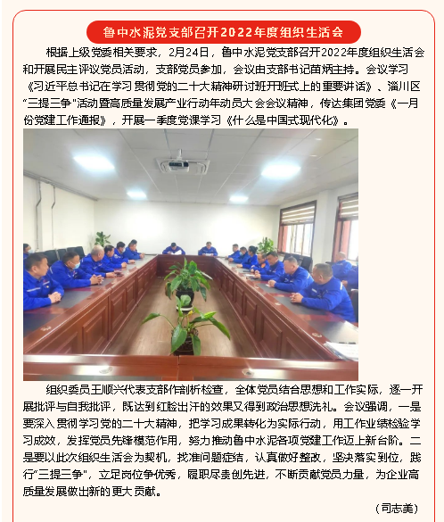 【黨建】魯中水泥黨支部召開2022年度組織生活會、魯蒙水泥黨支部開展主題黨日活動