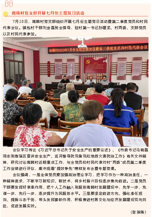【黨建】南韓村黨支部開展七月份主題黨日活動(dòng)、鵬峰化工黨支部召開支部(擴(kuò)大)會(huì)議