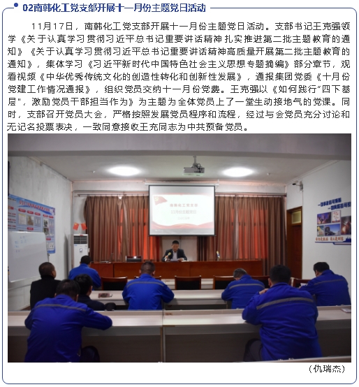 【黨建】集團(tuán)機(jī)關(guān)黨支部召開支委擴(kuò)大會、南韓化工黨支部開展十一月份主題黨日活動
